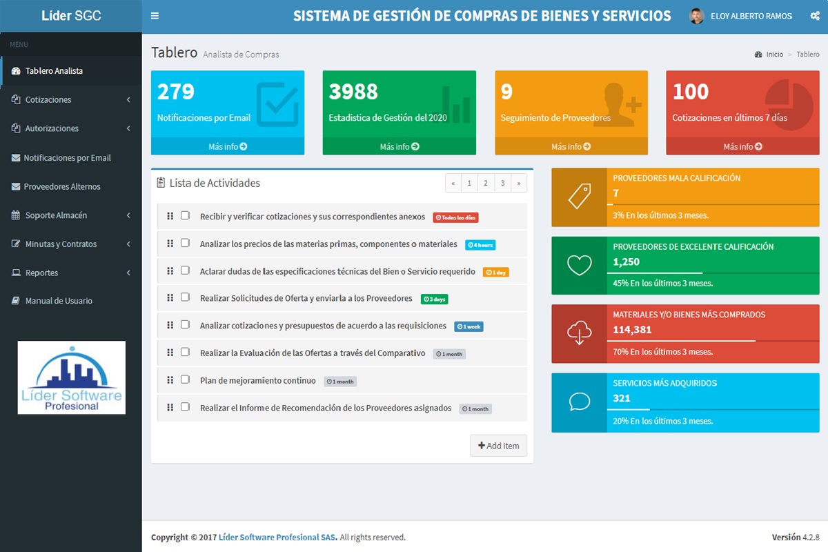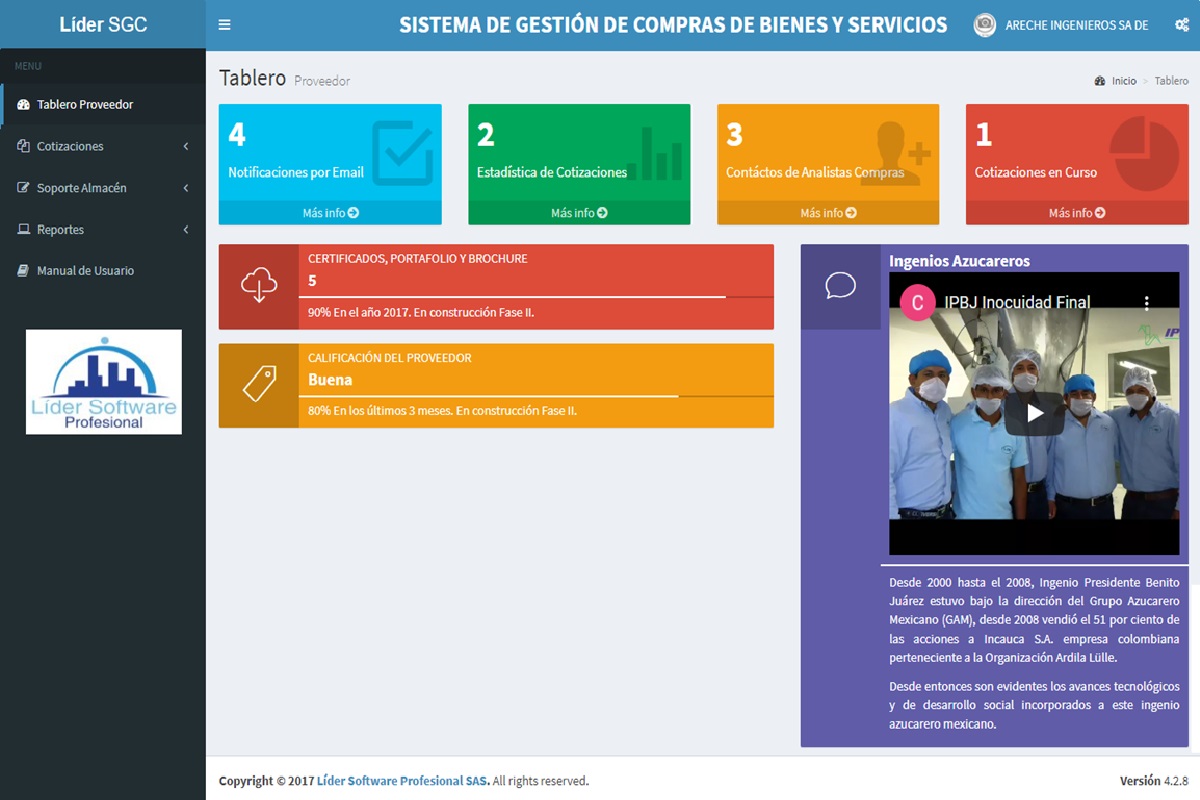 La Plataforma Líder SGC - Sistema de Gestión de Compras Web, es especializada en la optimización de la gestión de compras de bienes y/o servicios de las compañías multinaciones y/o pymes, para realizar los procesos de licitaciones de las peticiones de ofertas a los proveedores de manera transparente, segura, organizada, controlada, y ágil, integrandose con el ERP del cliente.