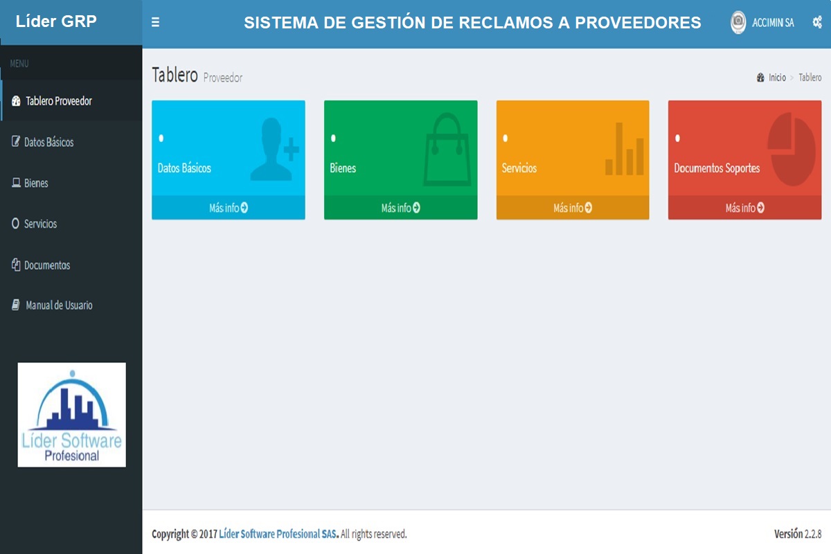 La Plataforma Líder GRP - Sistema de Gestión de Reclamos de Proveedores en la Web/Moviles, es especializada en la optimización de la gestión de reclamos de proveedores de bienes y/o servicios de manera segura, organizada, controlada, y ágil. El sistema automáticamente va ponderando la calificación de la evaluación de los proveedores activos en el ERP del cliente.